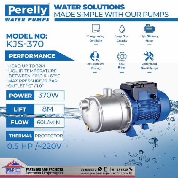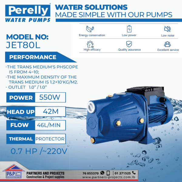 JET-SeriesPerelly JET Pump JET 0.75HP-220V 44mt*50LT/min 550W Thermal Protector Perelly JET Pu...Price range: $70.92 through $77.00 Select options This product has multiple variants. The options may be chosen on the product page
