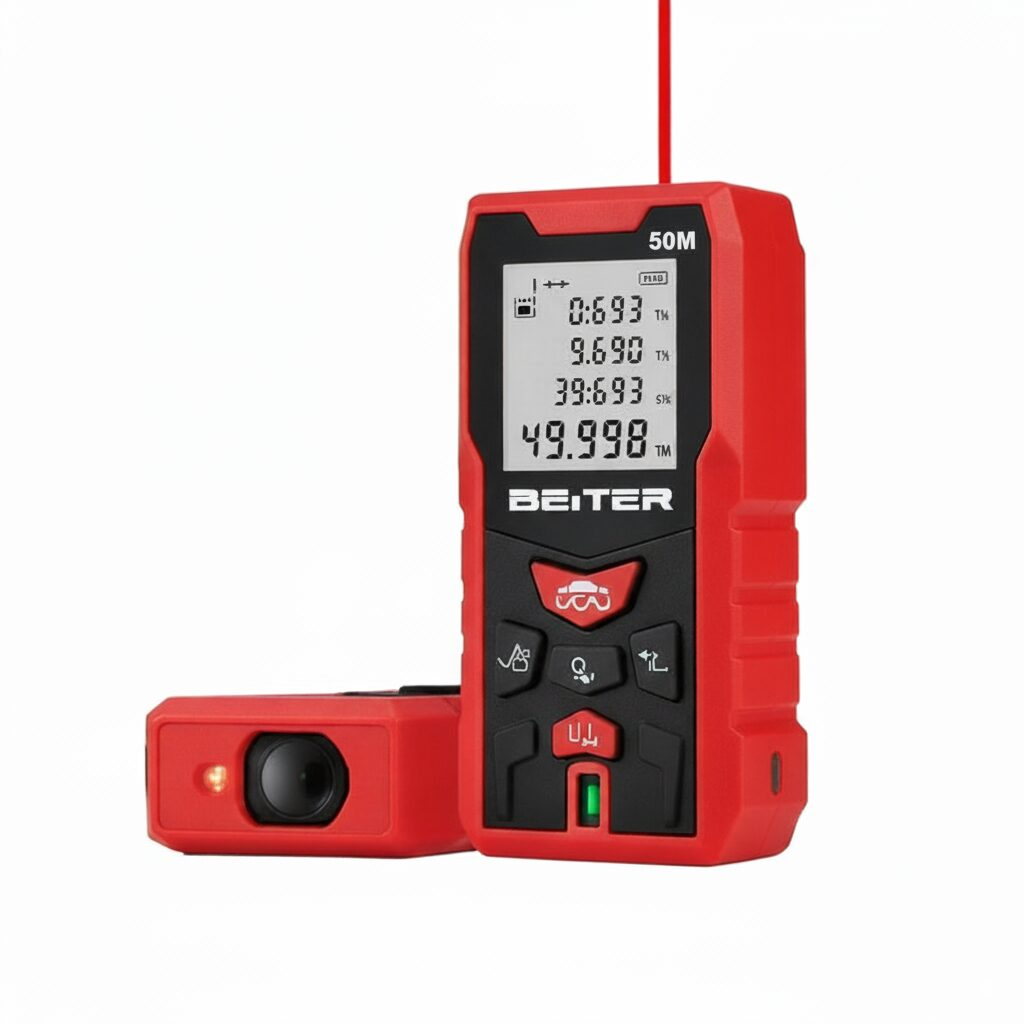 Measurement Range: 50m Accuracy: +/- 2mm Data Storage: 50 Power Supply: 3x AAA Laser Class: Class 2 Size: 114 x 50 x 27mm – Innovative Patented Green Distance Meter with High Accuracy – Visibility up to 100m Package Included: BT-B50M Laser Range Finder (Red) 50M – 1 unit Batteries AAA – 3 units Portable Bag – 1 units Hand Strap – 1
