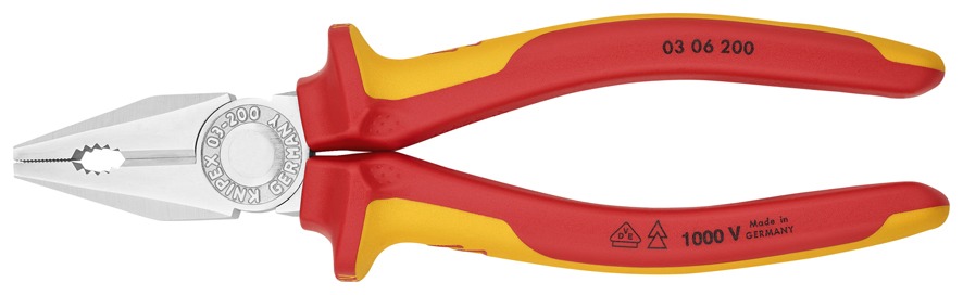 Knipex | 03 06 200 | VDE Combination Pliers | Multi-Component Handle | Chrome Plated – 200mm