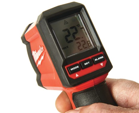 The Milwaukee 10:1 Infrared Temp-Gun™ (2267-40) is a rugged, non-contact temperature measurement tool designed for fast and accurate readings across a wide range of applications, from HVAC and automotive work to industrial and manufacturing environments. Featuring a 10:1 distance-to-spot ratio that lets you measure temperatures from a 1 m spot at up to 10 m away, it covers a broad -30 °C to 400 °C range with quick, easy scanning. Its premium LCD display ensures clear readability, while simplified buttons and setup make operation intuitive, and raised overmolding protects the lens and screen from impact damage on the jobsite. Lightweight and ergonomic, this infrared temp gun is supplied ready to use with 2 × AA batteries included for convenient, portable temperature testing.