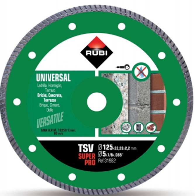 RUBI TSVSUPPERPRO Diamond Cutting Disc125x22.23×2.2mm for Concrete and Brick